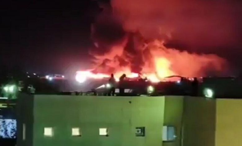 العراق.. حريق هائل يلتهم مخازن شركة أمريكية بعد قصفها في البصرة