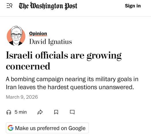 قول إغناتيوس إن قرار وقف الهجمات يعتمد إلى حد كبير على الرئيس ترامب، إشارة قوية إلى أن إدارة الحرب ليست إسرائيلية بالكامل بل أمريكية القيادة. وهذه جملة سياسية ثقيلة في واشنطن.