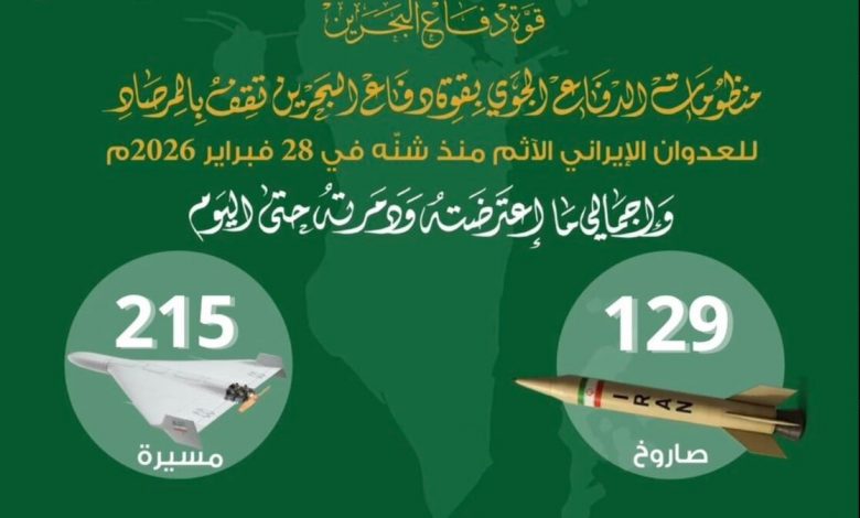 كشفت قوة دفاع البحرين اليوم الاثنين حصيلة الصواريخ والمسيرات الإيرانية التي اعترضتها منذ اندلاع الحرب بين الولايات المتحدة وإسرائيل، وإيران.