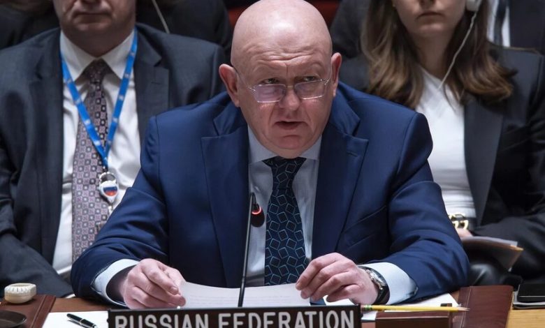 وقال نيبينزيا، خلال جلسة لمجلس الأمن الدولي، إن “الصراع القائم بين الولايات المتحدة وإسرائيل من جهة، وإيران من جهة أخرى، بات يجذب المزيد من دول المنطقة إلى أتون المواجهة، بما في ذلك سوريا”.