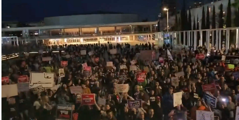 وشارك المئات في المظاهرة المركزية بتل أبيب في ساحة “هبيما”، بدعوة من ائتلاف يضم عشرات منظمات المجتمع المدني وحقوق الإنسان، تحت عنوان “لا للحرب الأبدية للحكومة الكهانية، نعم لسلام وأمن عادلين لشعوب المنطقة”.