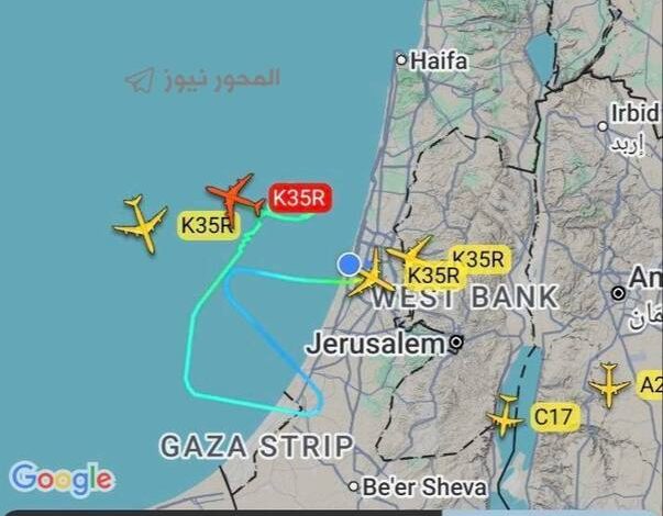أظهرت بيانات من بوابة FlightRadar24 أن طائرة التزود بالوقود الأمريكية من طراز بوينغ KC-135R، التي أرسلت إشارة استغاثة فوق البحر الأبيض المتوسط هبطت في مطار تل أبيب.