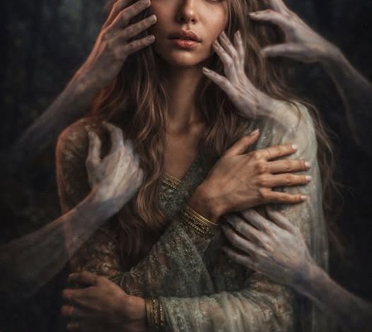 ثم بدأت الأيدي تظهر،واحدة تلامس خدها،أخرى تتسلل إلى عنقها وأخرى تعانق ذراعيها بقسوة.