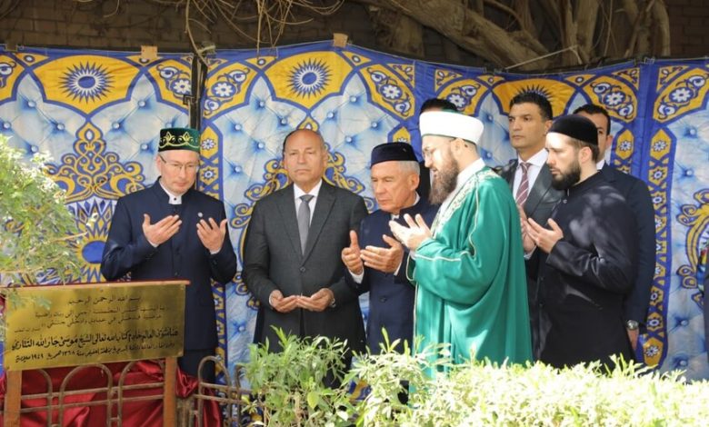 زار حاكم جمهورية تتارستان الروسية رستم مينيخانوف قبر الشيخ موسى جار الله التتري بمقابر العائلة الملكية في حوش الباشا بمنطقة صحراء المماليك قايتباي في مصر.