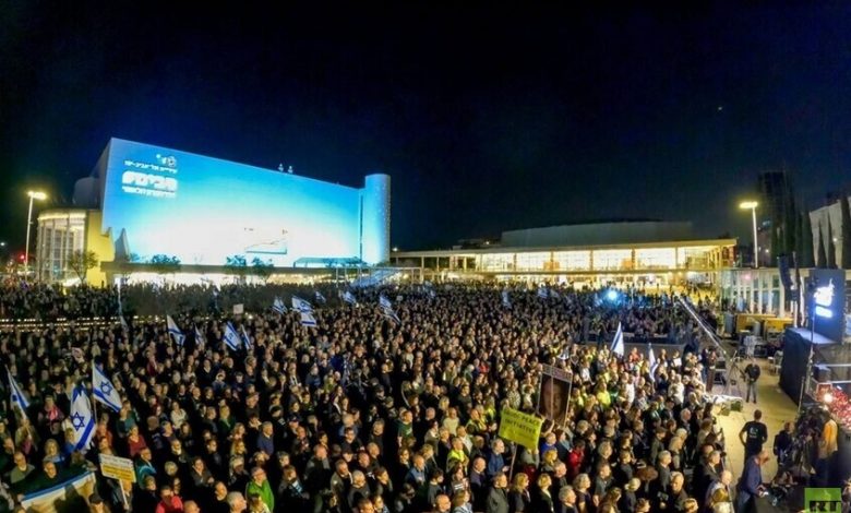 خرج آلاف الإسرائيليين مساء السبت في مظاهرة مناهضة للحكومة في وسط مدينة تل أبيب، عقب وقف مؤقت للأعمال القتالية في المنطقة ورفع القيود المفروضة على السكان.