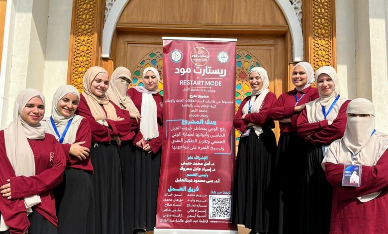 أطلقت مجموعة من طالبات قسم العلاقات العامة والإعلان بكلية الإعلام بنات جامعة الأزهر، مشروع تخرجهن تحت عنوان “ريستارت مود”، والذي يهدف إلى رفع الوعي بمخاطر حروب الجيل الخامس وأدواتها، بما يسهم في حماية الوعي الجمعي وتعزيز التفكير النقدي وترسيخ القدرة على مواجهتها.