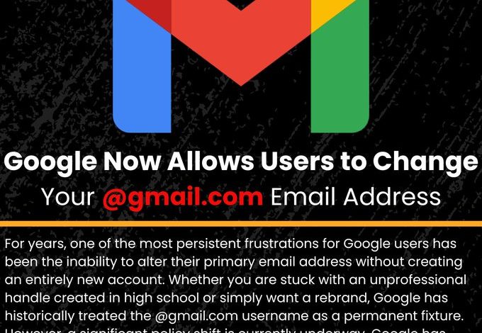 تشير وثيقة رسمية من “غوغل” إلى أن المستخدمين قد يتمكنون قريبا من تغيير عناوين البريد الإلكتروني @gmail.com الخاص بهم دون الحاجة إلى إنشاء حساب جديد.