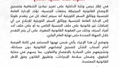 الكويت تمنح المخالفين في قضايا ملف الجنسية فرصة للعفو وتحدد المهلة