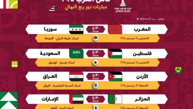 بعد اكتمال عقد المتأهلين.. جدول المواجهات ومواعيد ربع نهائي كأس العرب 2025