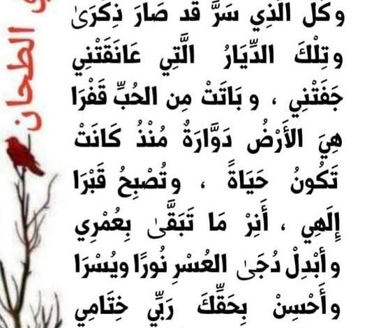 هُوَ العُمْرُ قد مَرَّ أو فَرَّ مِنِّي وكُلُّ الَّذِي سَرَّ قَدْ صَارَ ذِكْرَىٰ و تِلْكَ الدِّيَارُ الَّتِي عَانَقَتْنِي جَفَتْنِي ،…