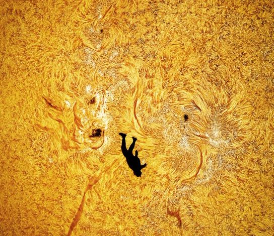 التقط مصور الفضاء أندرو مكارثي لقطة نادرة للشمس مع مظلي يسقط من السماء، ما أنتج صورة مذهلة لإنسان يظهر كظل…